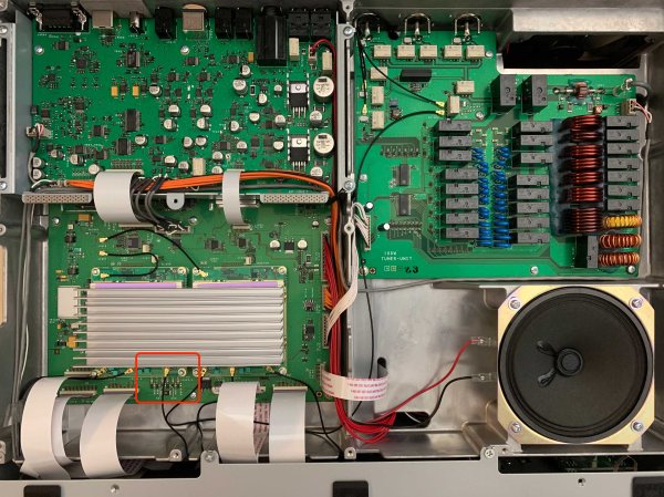 2. Снимите вторую защитную крышку и видим большой радиатор возле которого расположен TX-OUT J2002-2.